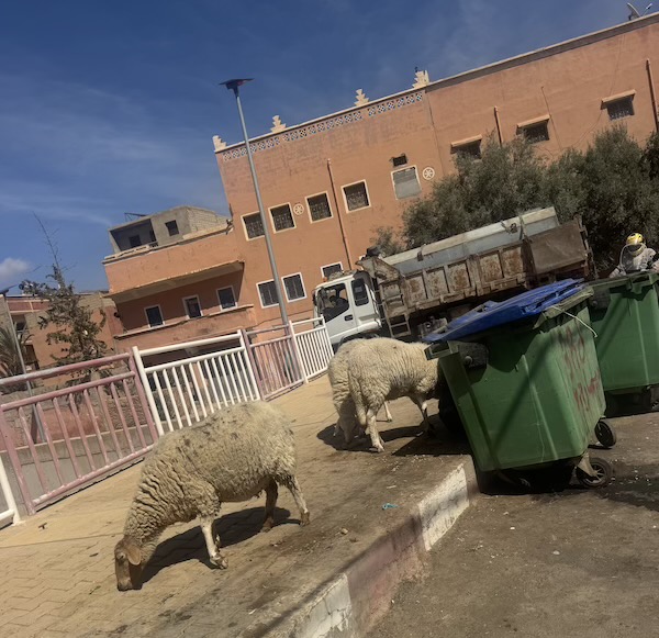 Les moutons n’hésitent pas à venir en ville faire les poubelles !