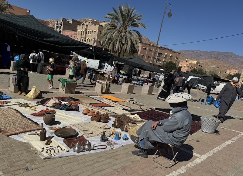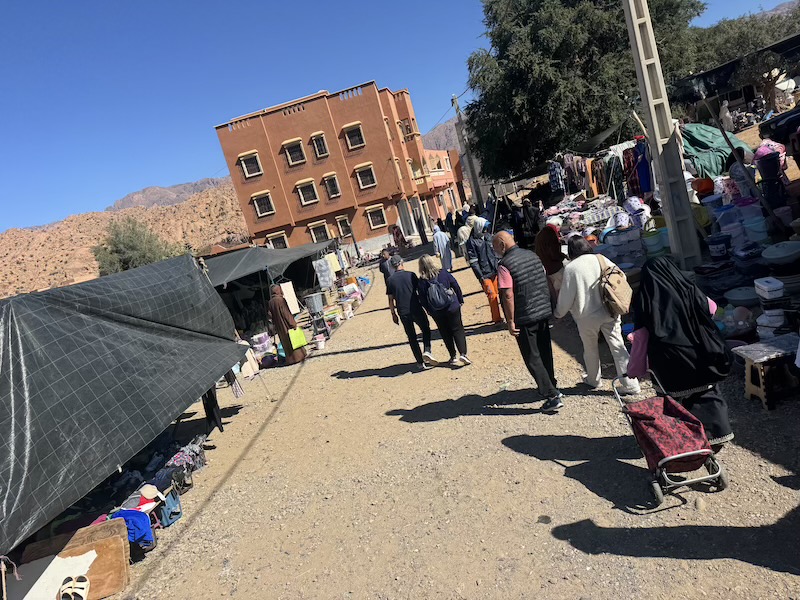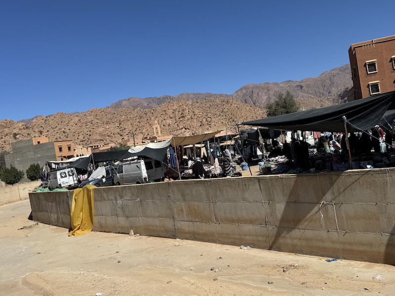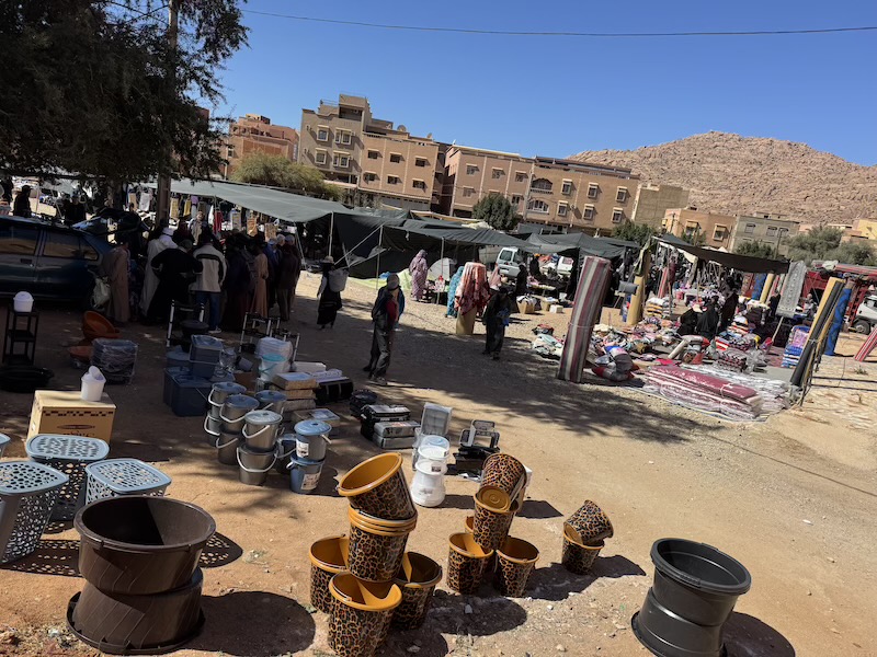 Le mercredi, c’est le jour du grand souk à Tafraoute. Après le départ de nos amis français, nous sommes allés au marché et ensuite manger dans un petit restaurant que l’on nous avait recommandé.