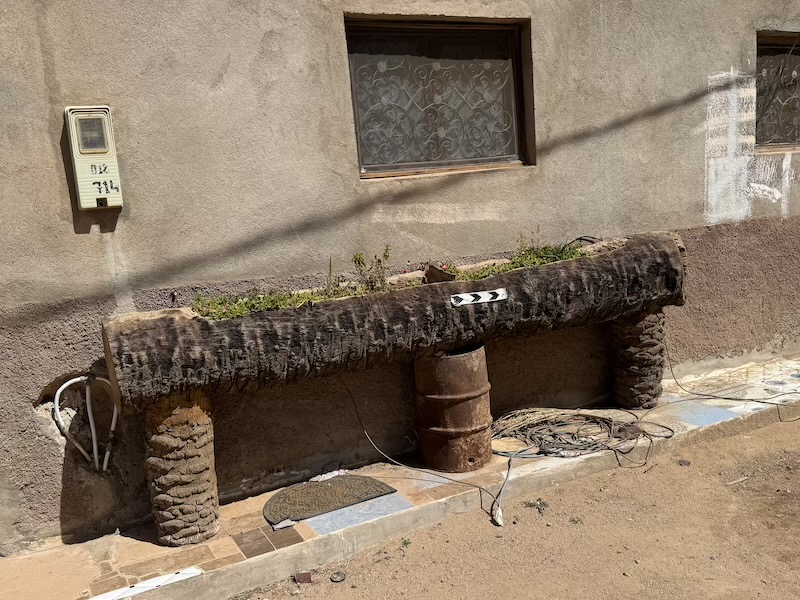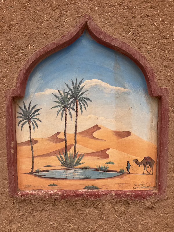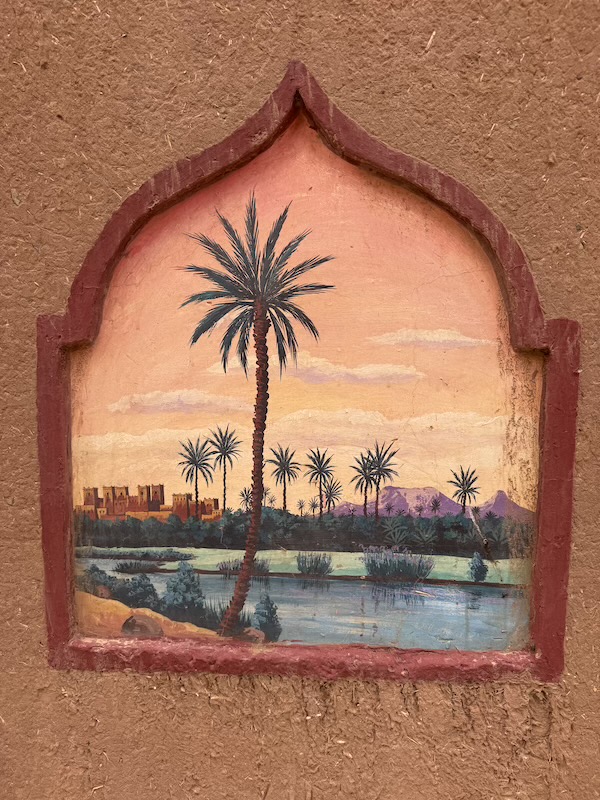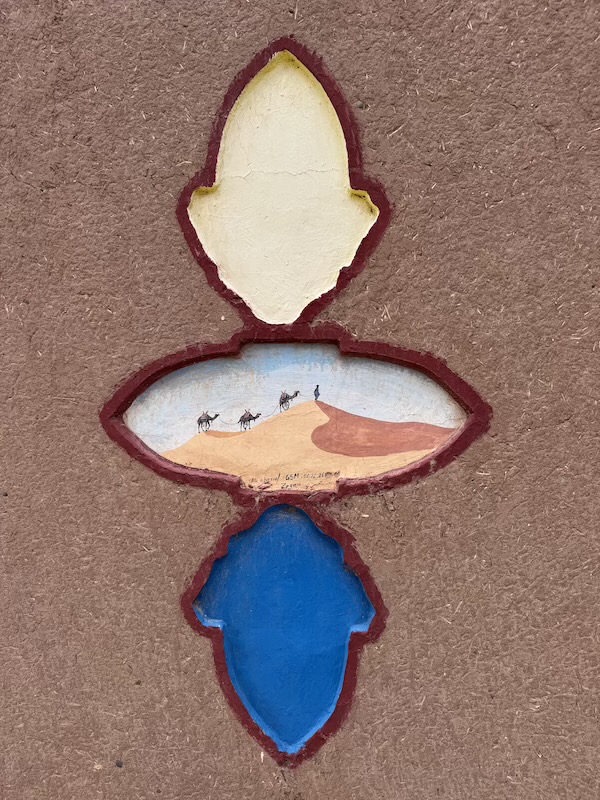 Décoration sur les murs en pisés du camping où nous étions.