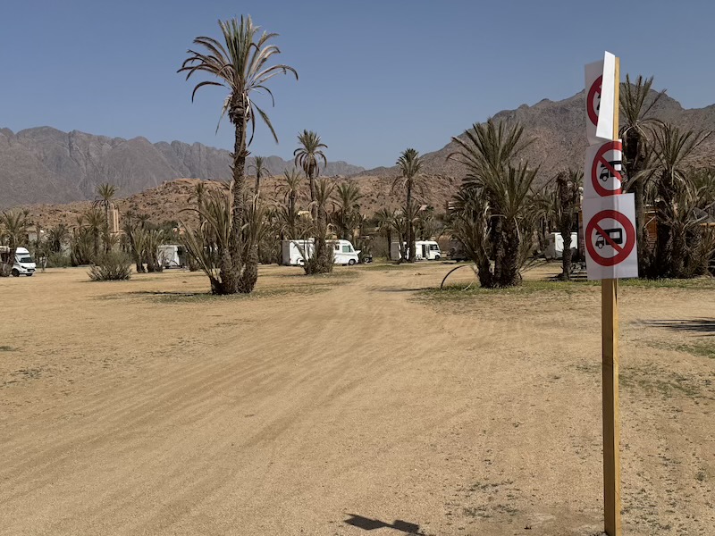 Une partie de la palmeraie est interdite au camping-car. Malheureusement, il y a toujours des plus intelligents que d’autres ! Et après on s’étonne qu’il y ait de plus en plus d’interdiction !