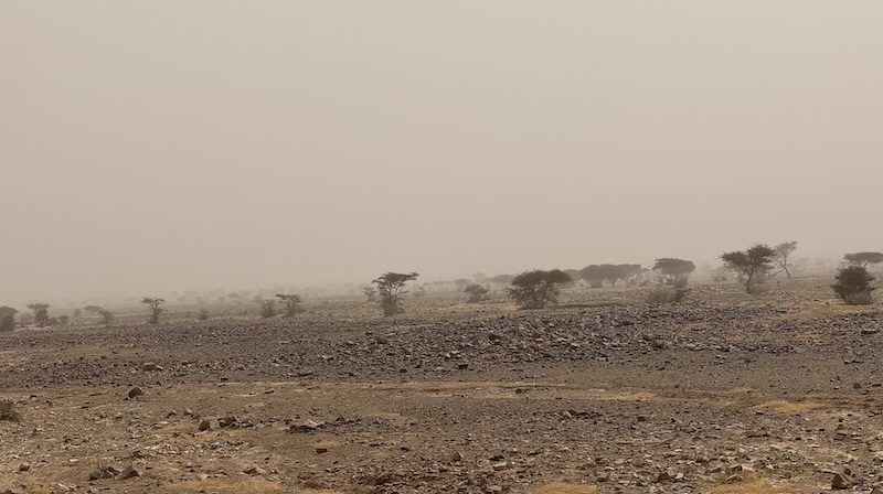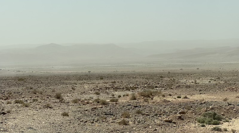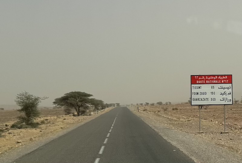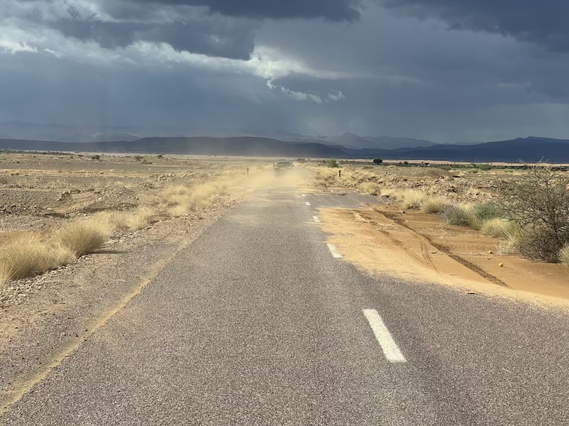 Dernier kilomètre avant d’arriver à Foum Zguid et toujours avec le vent de sable.