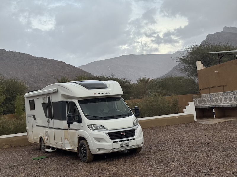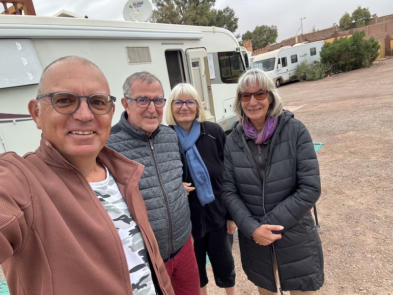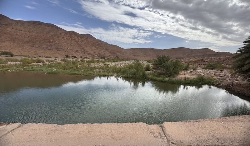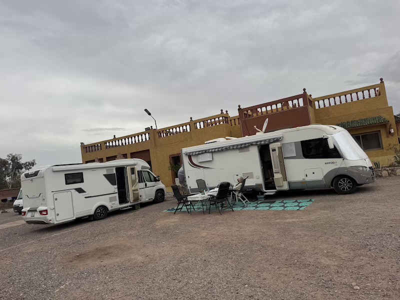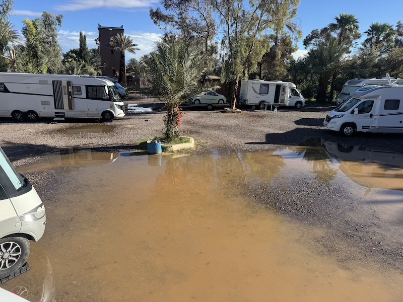 Nous avons quitté Ouarzazate et sommes allés à Zagora ainsi qu’à Tamegroute. Le temps en journée était bon mais par contre la nuit, nous avons eu droit à de grosses pluies. C’est à Tamegroute, après différentes visites et un bon couscous que nous avons quitté Florence et Alain. Ils remontent en direction de Tanger Med et quant à nous, nous retournons quelques jours sur la côte autour d’Agadir. Nous faisons étape à Foum Zguid, sous la pluie. Pour la route, le temps était bon mais beaucoup d’oued ont débordé sur la route car il y a de la pluie sur les montagnes.
