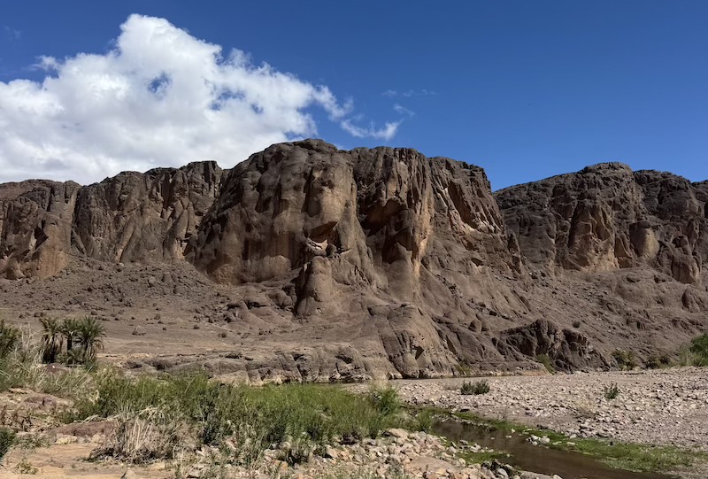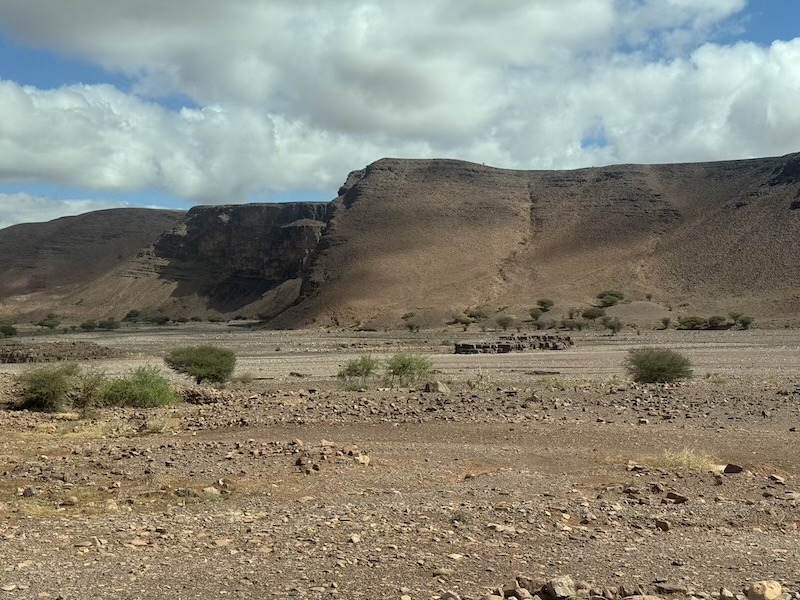 Quelques fois, la route passe au bord d’un oued. On a de la peine à imaginer qu’il peut y avoir de l’eau.