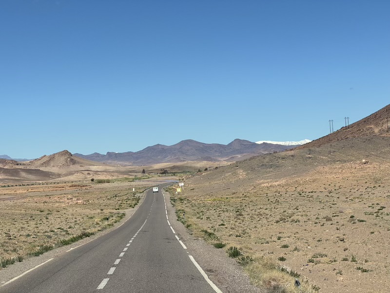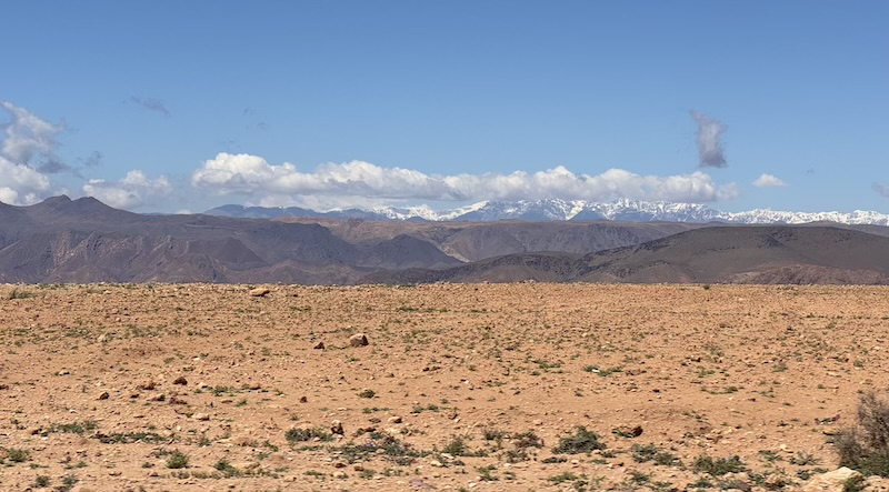 Comme nous sommes à une altitude moyenne de 1800 mètres, nous revoyons la neige qui est à côté de Ouarzazate.