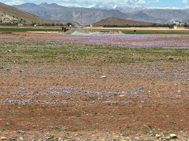 C’est peut-être un champs de crocus car nous ne sommes pas très loin de Taliouine. Si c’est le cas, plus qu’à prendre le safran !