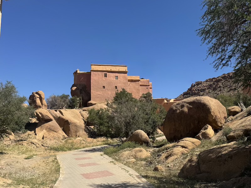 Un bel hôtel dans l’architecture berbère mais perdu au milieu de nulle part.