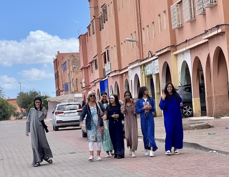 Deux femmes berbères viennent voir ces drôles d’habitations.
