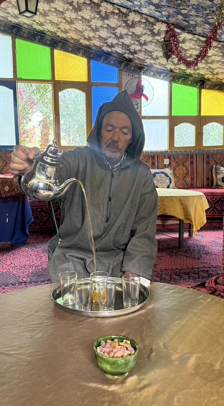 Thé à la menthe de bienvenue servi par Mohammed