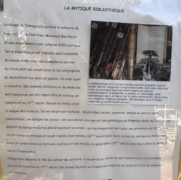 Entrée de la bibliothèque coranique de Tamegroute. De très anciens livres y sont conservés. Malheureusement, photos interdites.