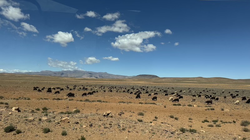 Nous revoyons de grands troupeaux de chèvres et moutons.