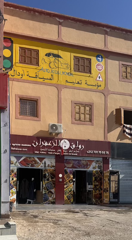 Une belle enseigne. Dans les lettres, Ouarzazate est écrit en berbère.