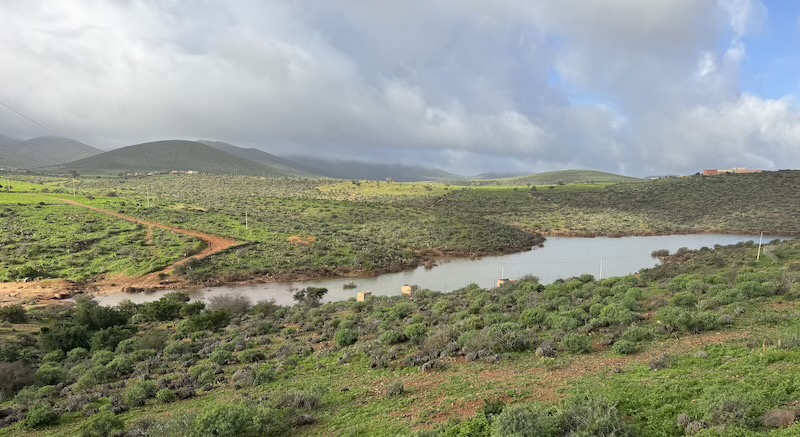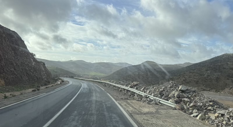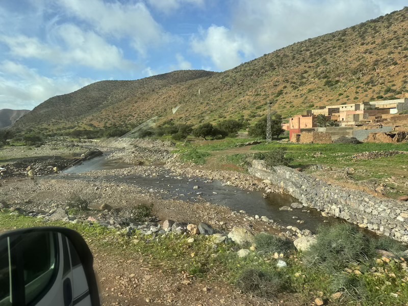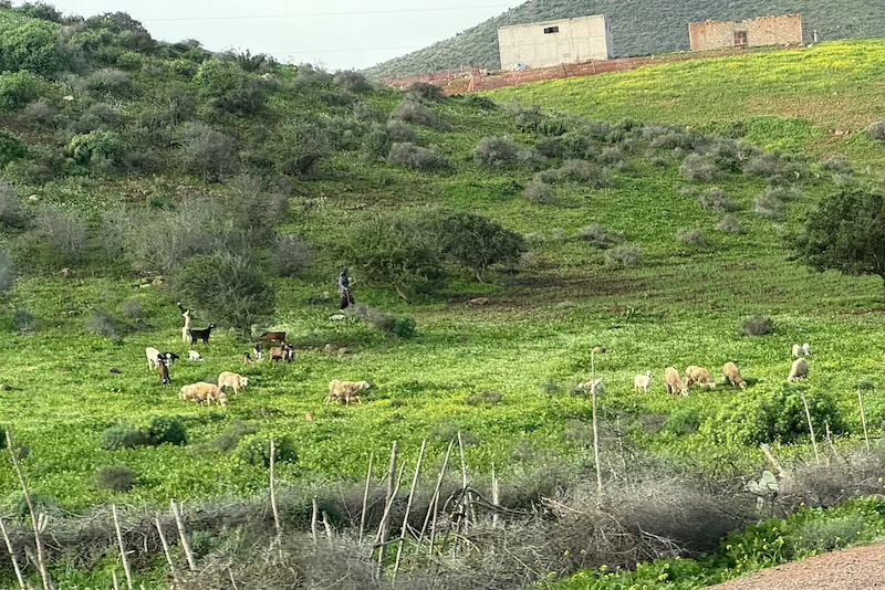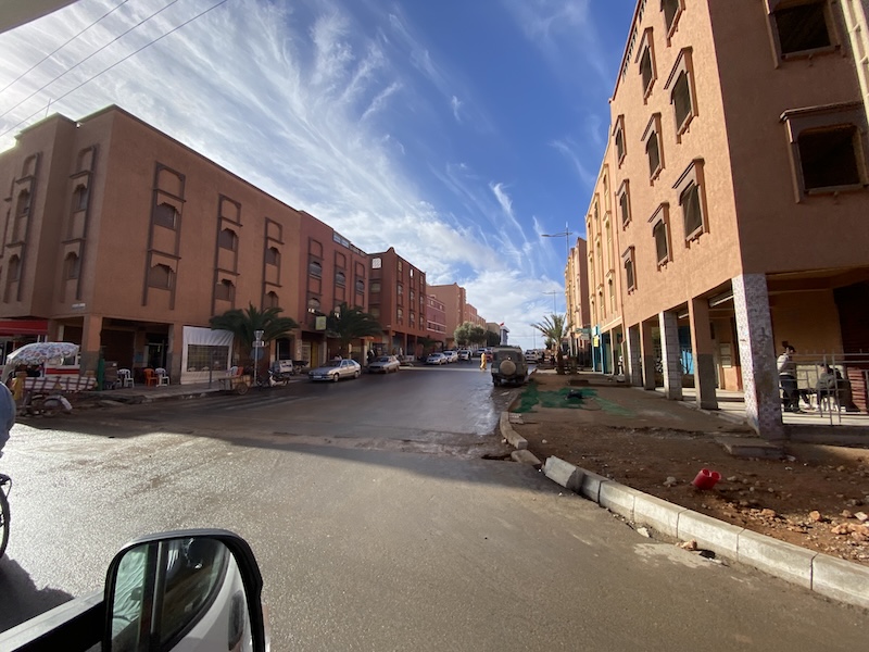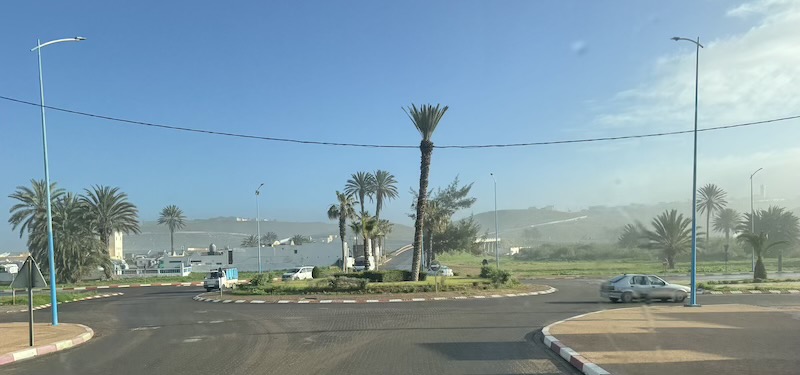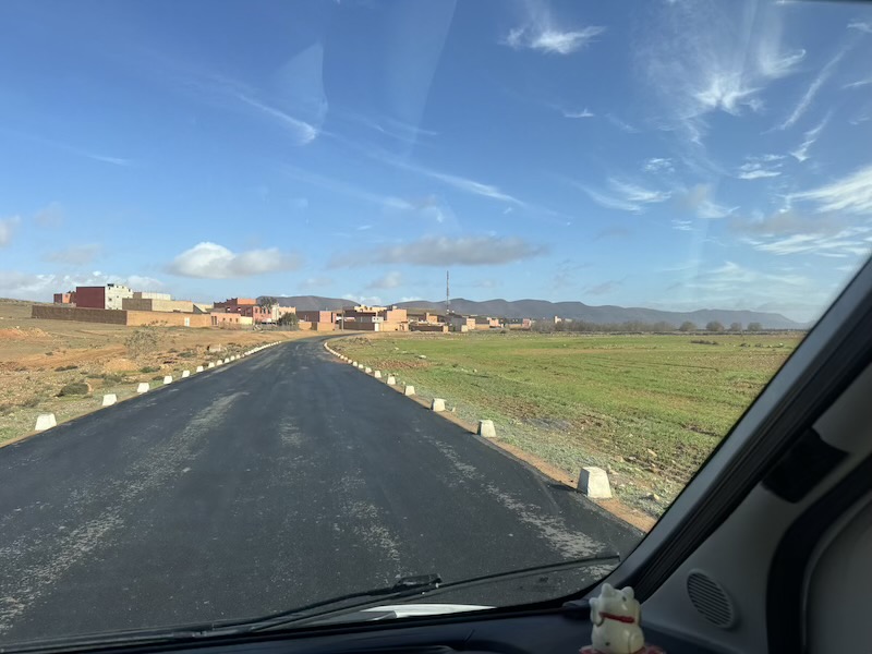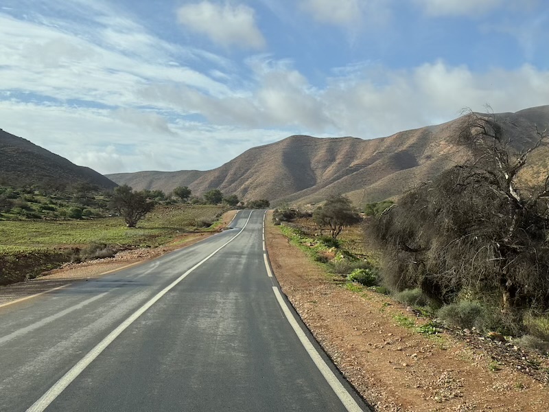 Après Guelmim, changement de décor. C’est plus désertique avec toutefois quelques taches vertes.
