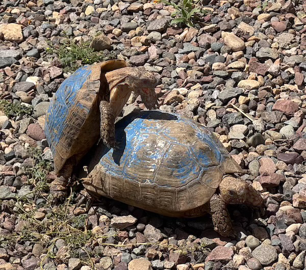 Au camping de Takate, il y a des tortues. Certaines sont peintes en blanc, d’autres en bleu, ceci pour ne pas les écraser. Cette année, c’est le blanc et vous allez en voir !