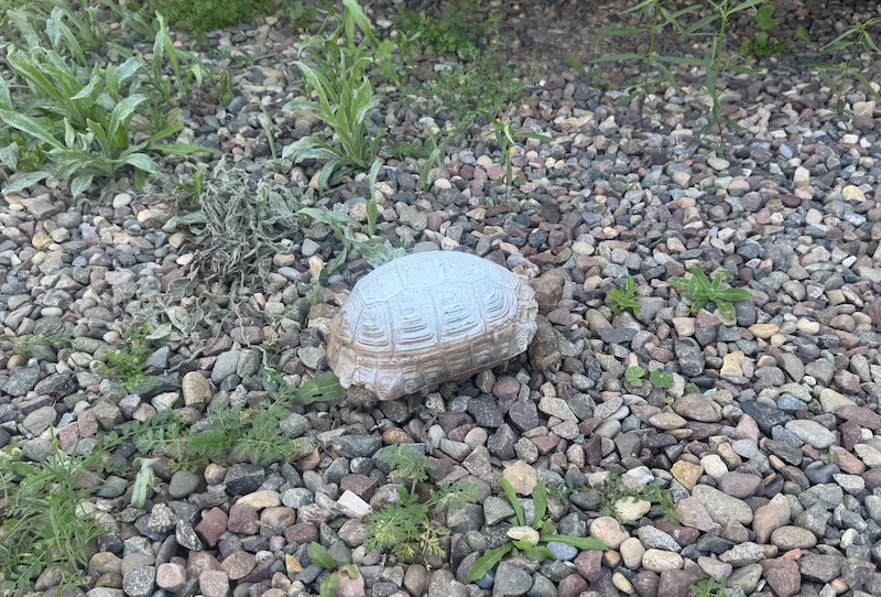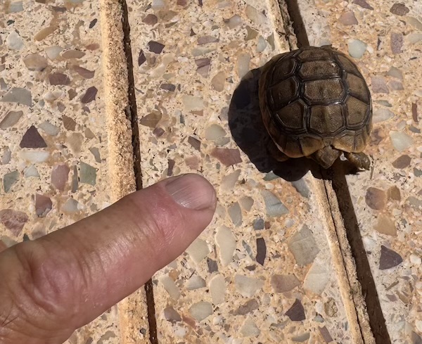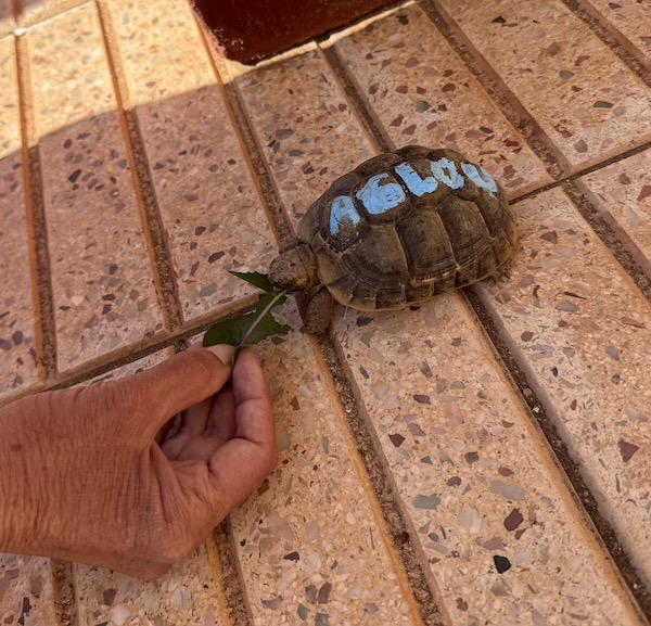 Devenue grande, les tortues du camping sont colorées pour mieux les voir et surtout afin que les véhicules ne leur roulent dessus.