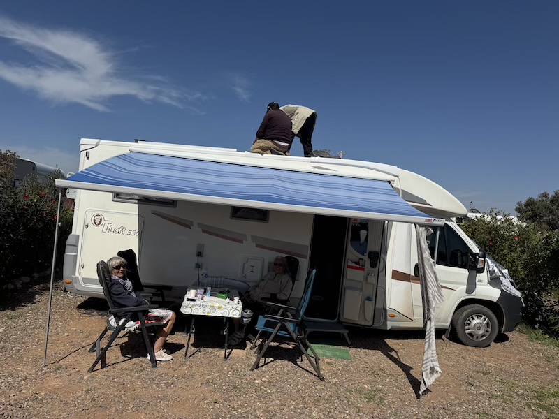 Nous avons profité d’installer un panneau solaire supplémentaire sur nos camping-car. Ici, nous voyons la pose sur Doudou.