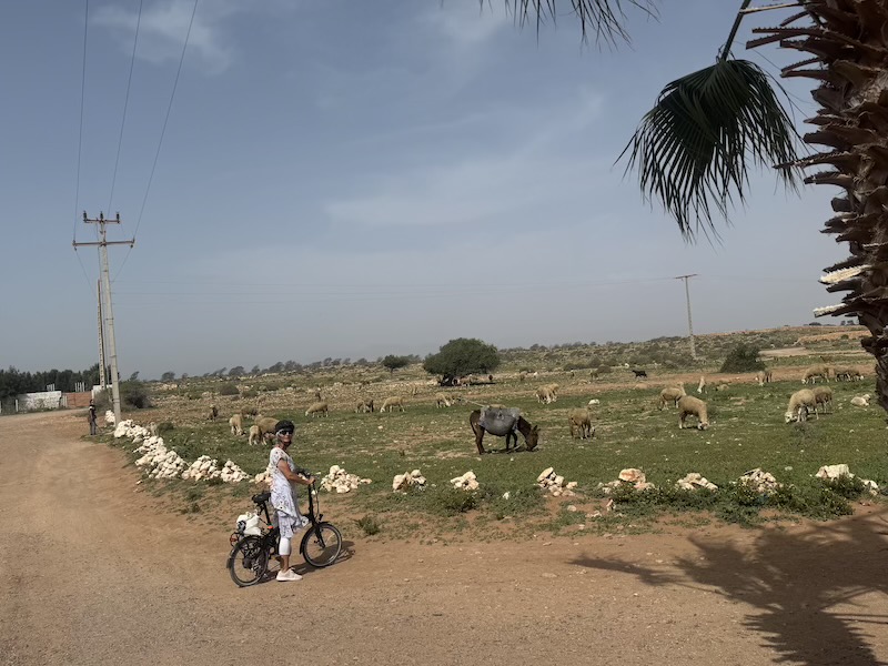 Nous voyons passablement de troupeaux de moutons passés autour du camping de Takate.