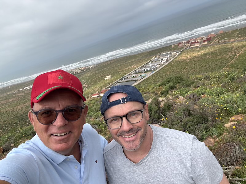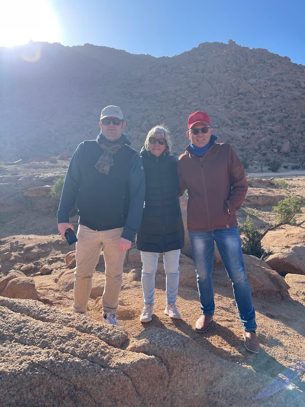 Une partie de la famille de Florence et Alain est repartie en France, les vacances étant terminées pour eux. Pour ceux restant à Aglou, nous décidons d’aller montrer Tafraoute à Guillaume. Mais avant cela, nous avons été voir la vue depuis une colline derrière le camping avec Francisco, le mari de Marion.