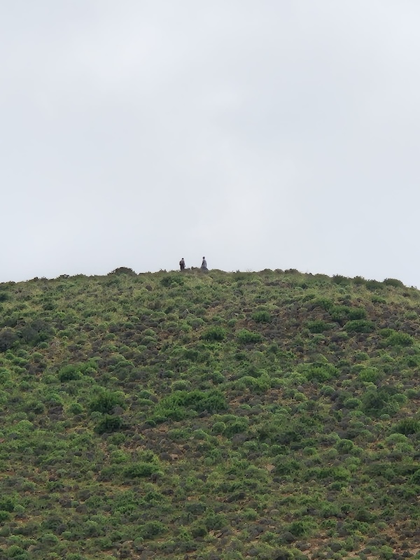 Francisco et Patrick arrivant au sommet de la colline.