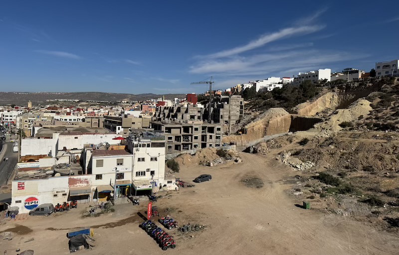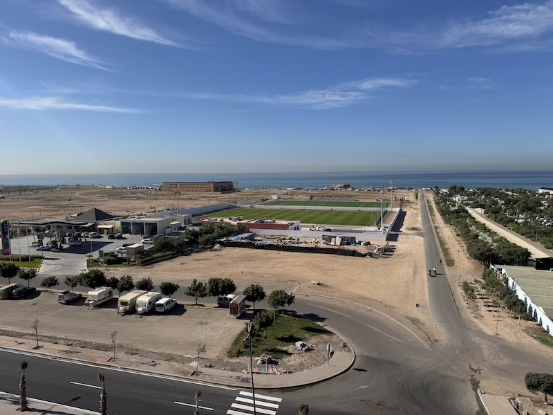 Voici quelques vues du village où nous sommes. Beaucoup de changement en une année. La route nationale 1 a été complètement remaniée, de nouvelles maisons sont apparues, de nouveaux restaurants créés et deux terrains de football ont été créés, notamment pour, semble-t-il, l’entraînement d’équipe de la coupe d’Afrique commençant le 21 décembre. Pour Agadir, ce sont les équipes de l’Angola, l’Afrique du Sud, l’Egypte et du Zimbabwe qui sont concernées.